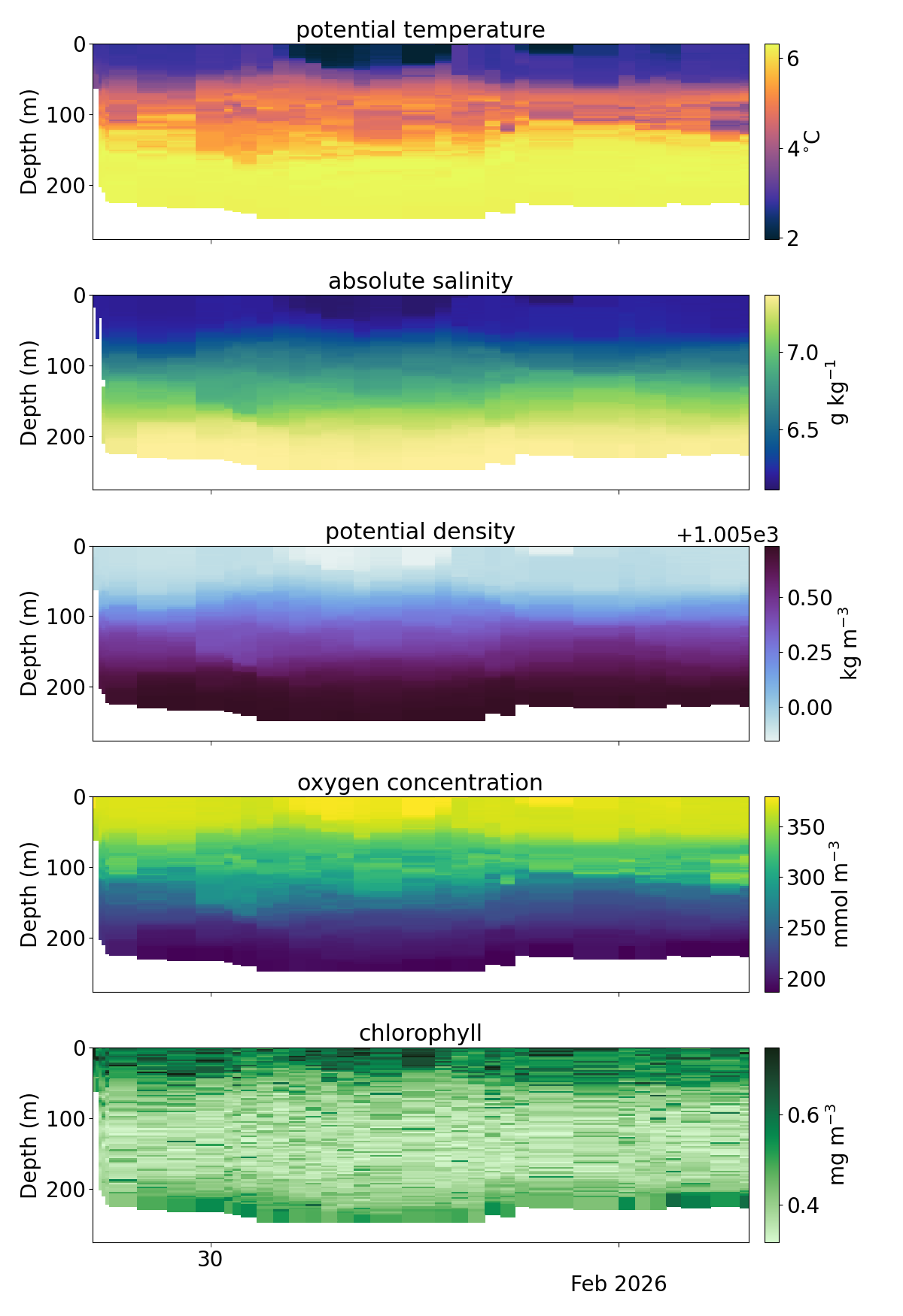 Our 17 gliders have recorded 515,871 profiles during 19 years 71 days at sea, covering 149,482 km. Our 4 sailbuoys have spent 1 years 179 days at sea sailing 67,601 km.
