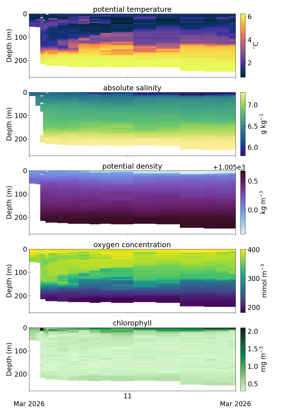 Our 17 gliders have recorded 522,047 profiles during 19 years 122 days at sea, covering 149,950 km. Our 4 sailbuoys have spent 1 years 179 days at sea sailing 67,601 km.