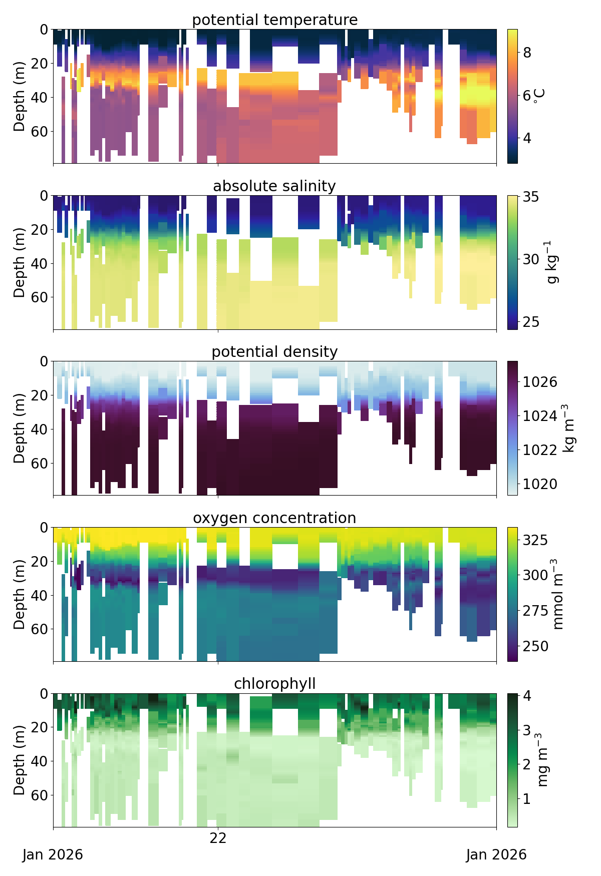 Our 17 gliders have recorded 513,824 profiles during 19 years 36 days at sea, covering 148,879 km. Our 4 sailbuoys have spent 1 years 179 days at sea sailing 67,601 km.