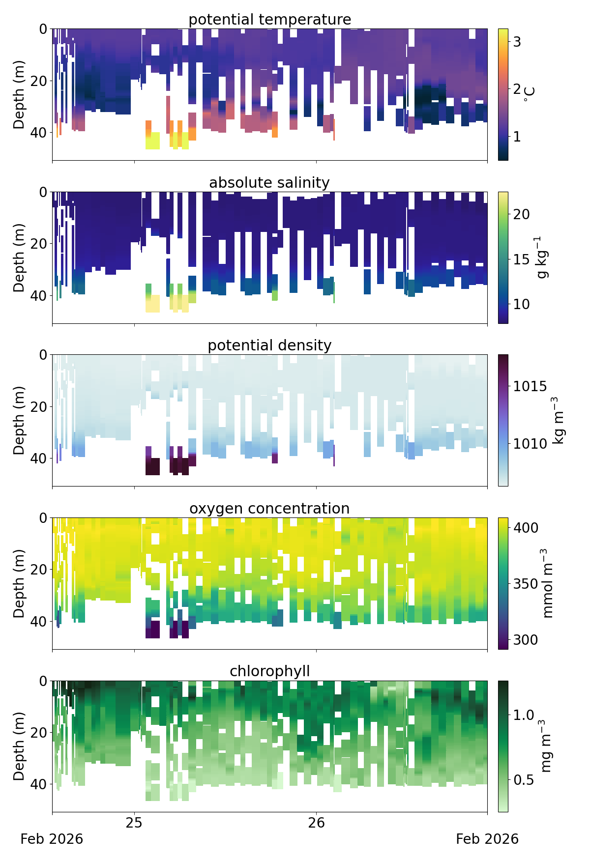 Our 17 gliders have recorded 517,684 profiles during 19 years 90 days at sea, covering 149,397 km. Our 4 sailbuoys have spent 1 years 179 days at sea sailing 67,601 km.