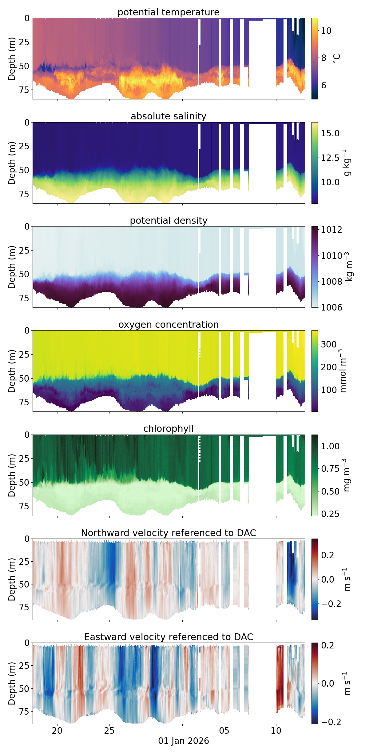 Comment: Data gaps from 2025-01-02 due to loitering for endurance and logistical reasons. Tridente phycocyanin channel values are suspect. The cause is under investigation and appears to be due to bad calibration https://observations.voiceoftheocean.org/static/img/reports/Quality_Issue_5_tridente_phycocyanin.pdf